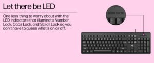 - Let there be LED: LED indicators illuminate Number Lock, Caps Lock, and Scroll Lock so you don’t have to guess what’s on or off. One less thing