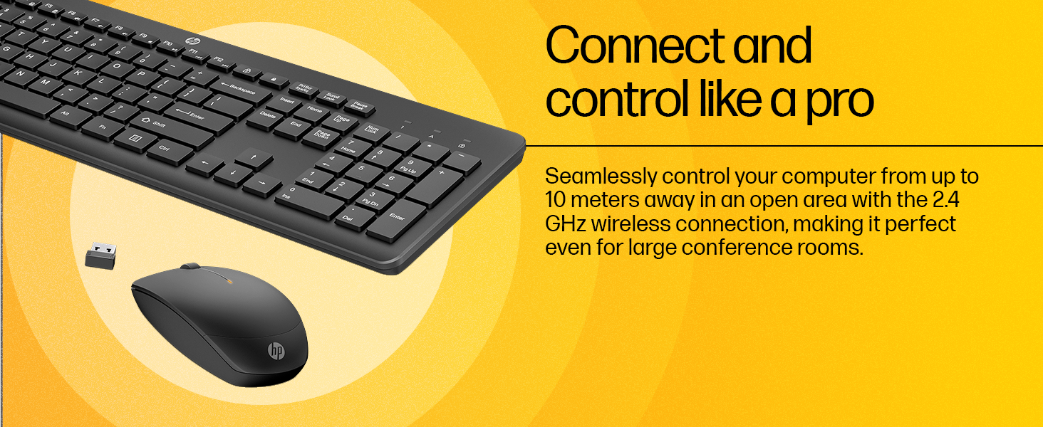 HP KM200 Wireless Mouse and Keyboard Combo, Full-Size Ergonomic Design, 3 Button and Built-in Scroll Wheel, 2.4 GHz Wireless connectio, 3 Years Warranty (7J4G8AA)
